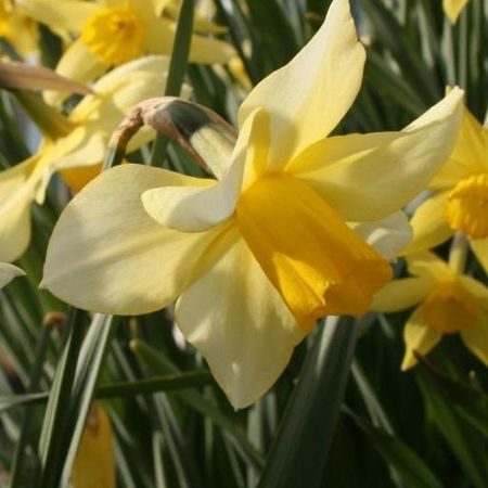 Bright yellow, vigorous and early. Sometimes considered synonymous with ‘Pentewan’; sometimes regarded as siblings. ‘California’ usually earlier; corona sometimes with more orange flushing and rim more loosely frilled. An utterly dependable daffodil with the staying power of the ubiquitous ‘Carlton’ but of more pleasing form.