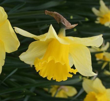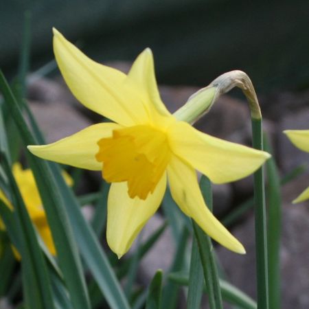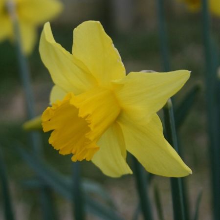 The “…largest clonal plant in the world…” asserts Andrew Tompsett in Golden Harvest (2006), meaning that a greater acreage of identical ‘Carlton’ bulbs was produced from the single, original, selected and named seedling than from any other vegetatively-propagated plant. The broad, creased perianth of “…soft, young duckling yellow…” (E.A. Bowles, 1934), fades to a softer hue of sulphur towards the tips and flushes bright canary-yellow at the base. The imposing corona is a stout, chiselled funnel of intense aureolin, flaring widely to a flamboyantly ruffled rim. Of iron constitution.