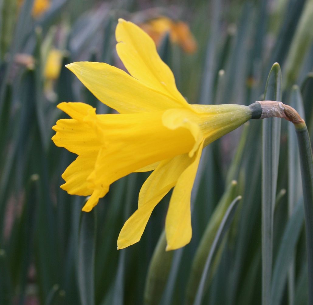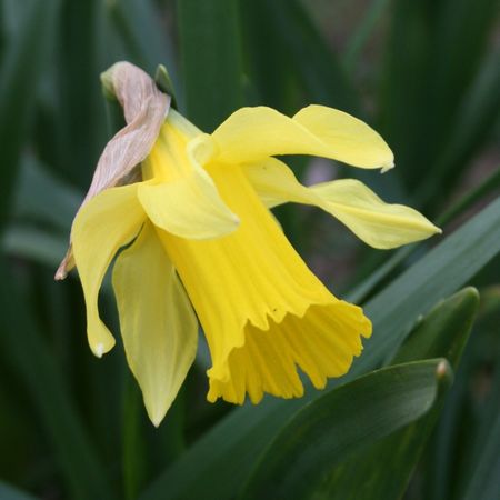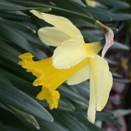 To be in flower for Yuletide, I suspect this slightly dwarfer and ever-so-slightly earlier flowering version of ‘Golden Spur’ would need to have been forced under glass. Although both flowers are of a similar mimosa-gold, ‘Christmas Glory’ is a more perky flower, the perianth segments more perpendicular to the trumpet, rather than flopping forward. The mouth of the trumpet is gashed more regularly and even more deeply into six well-defined lobes, which tend to recurve more strongly as the flower ages.