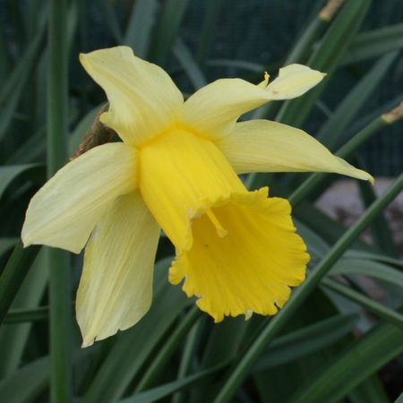 To my mind, this sibling of ‘Emperor’ is of perfect proportions, with almost flawless, almond-shaped perianth segments shielding an elegant, angled trumpet lightly flanged and flaring in upper third to a six-lobed notched and crenate rim. Slow to increase.