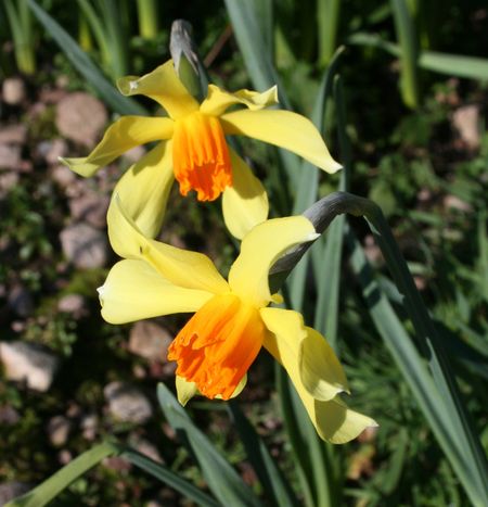 Rich colouring for such an early hybrid. Perianth segments rather slender and spreading, soon fading to sulphur-yellow. Corona straight, slender, deeply flanged; sometimes a little pinched at the mouth; depth of colour varying from soft to strong orange. Dwarf habit. Years ago we mistakenly sold this as ‘C.J. Backhouse’, but then, doubting this, withdrew it pending further research; we are now confident, from an archival picture, that we have determined its true identity.