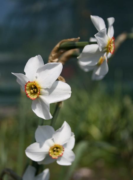 A small, round, very late flower on a long stem; the overlapping, pure white perianth segments, with a crystalline sheen, soon recurving. Corona colouring similar to ‘Ornatus’ but more greenish lemon-yellow. Like all Poets, delightfully sweetly scented.