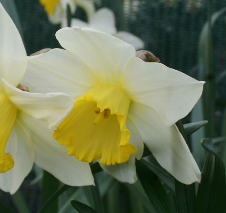 Large flowers borne on strong, long stems, with a milk-white perianth of durable substance and a large, gradually flaring, ridged corona, warm lemony primrose on opening becoming paler and sulphurous within, beyond the closely corrugated rim. Strapping.