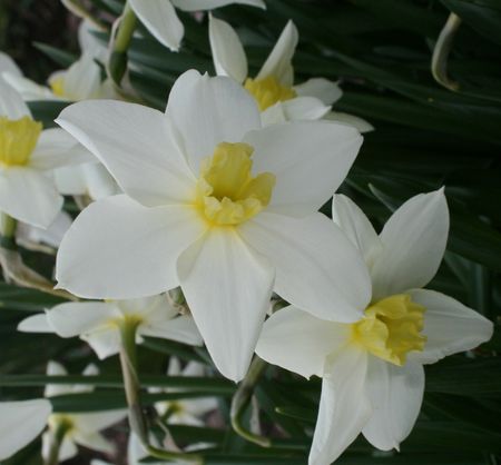 Clean, white perianth segments remain broad and overlapping at base. Corona almost tea-cup-shaped, passing to pale creamy yellow. Rim composed of deep, overlapping lobes becoming frosted white. Sweetly but lightly scented. A first-rate ‘White Lady’ type.