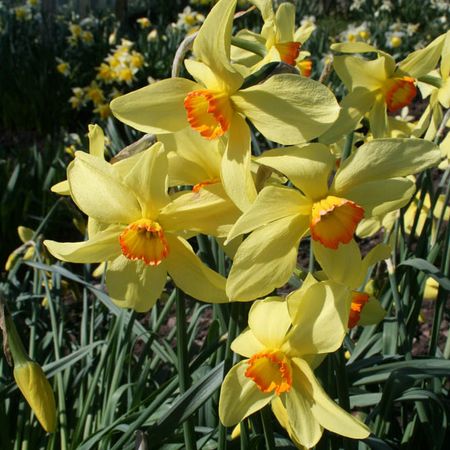 This tall, striking, late flower of exceptionally strong substance bears almost round, white perianth segments, spun with gold on opening, and a large, regularly-pleated, shallow, glowing gold, bowl-shaped corona generously margined Indian orange. Fittingly, with ‘Mozart’ as its parent, the opera-loving Brodie is likely to have named this vigorous and floriferous plant after that composer’s singspiel Il Seraglio, rather than after exotic Ottoman living-quarters set aside for wives and concubines – presumably in sharp contrast to Moray’s pink-harled bastion of Brodie Castle!