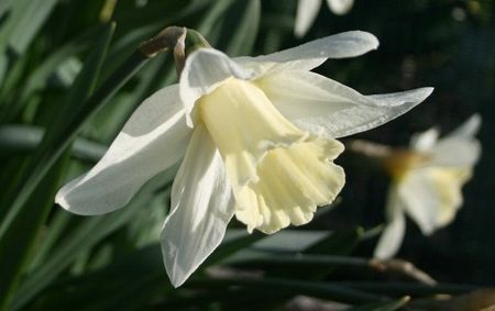 We have two strains with consistent, minor differences. A breathtaking flower with large, spreading, but graceful, perianth segments and a long, butter-milk trumpet gently flaring to a crenate rim. Engleheart’s finest, acquired (and named?) by the Brodie in 1917.