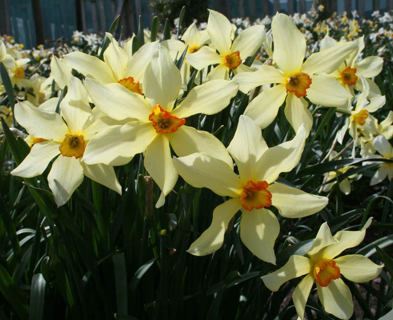 An interesting, handsome, but bafflingly late-flowering Barrii which seems to be neither ‘Conspicuus’ (perianth segments too slender and spreading), nor ‘Bath’s Flame’ (which flowers consistently earlier). So far we have only found it in two places, one a very old (derelict) cottage garden. Possibly Backhouse’s ‘Siddington’? Perianth reverses to soft sulphur-white.